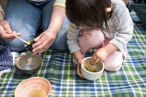 野点のすすめ お天気がよく気持ちの良い休日は、外でシートを広げて、お抹茶でもいかがですか?